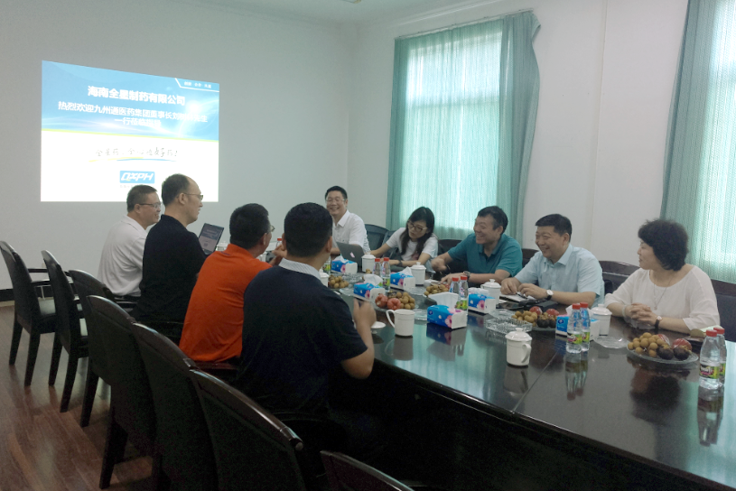 2018年07月25日,九州通醫(yī)藥集團(tuán)董事長(zhǎng)劉樹(shù)林先生一行蒞臨海南全星制藥有限公司調(diào)研并指導(dǎo)工作。全星制藥董事長(zhǎng)劉全勝先生攜公司領(lǐng)導(dǎo)班子一同參加了座談會(huì),并對(duì)劉樹(shù)林先生一行的到來(lái)表示熱烈的歡迎。雙方就企業(yè)的發(fā)展愿景及醫(yī)藥行業(yè)的發(fā)展前景展開(kāi)了討論。