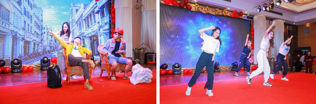 頒獎盛典過后,迎新年會節(jié)目匯演精彩紛呈,現(xiàn)場呼聲四起,笑聲不斷,掌聲雷動。最后震撼全場的海南民族舞蹈《竹竿舞》獲得了第一名,詼諧搞笑的《小人舞》、閃亮別致的《走秀》獲得了二等獎,啞劇《你有我也有》、民謠《九寨故鄉(xiāng)》、舞蹈《Good Time》獲得了三等獎。